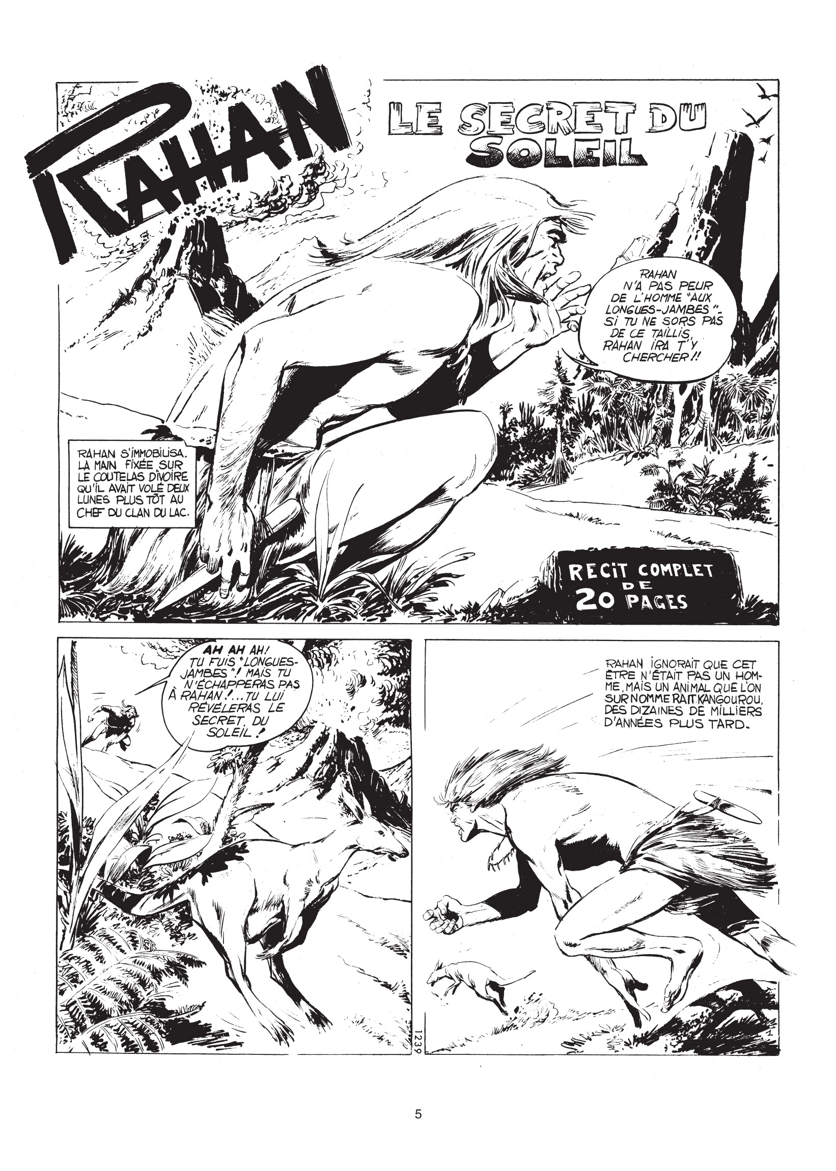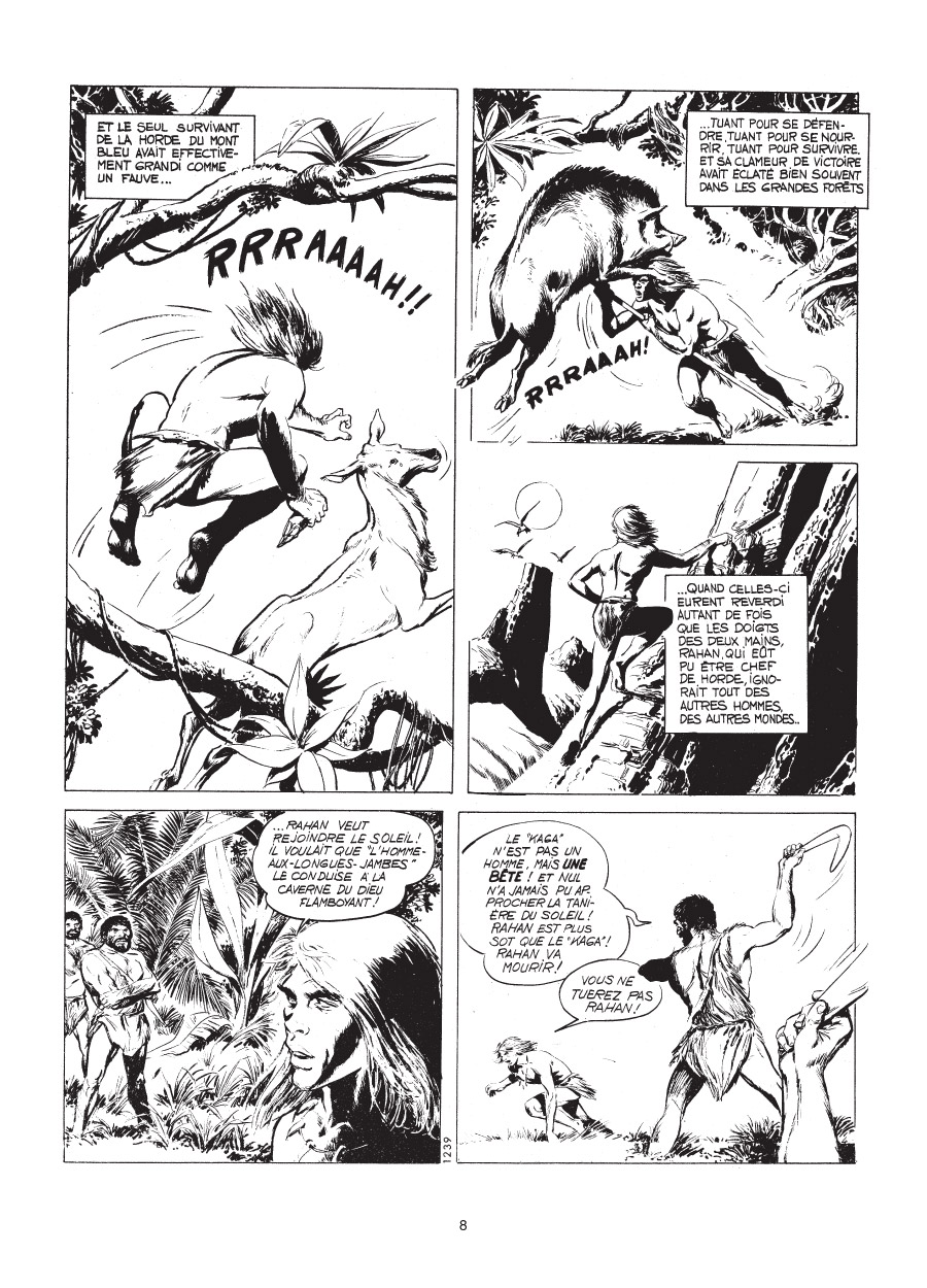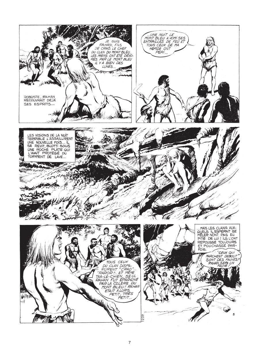 « L’histoire fantastique que nous allons conter se passa en des temps immémoriaux dans la nuit du fond des âges, à l’aube de l’histoire des hommes… En ces âges farouches, certains rêvaient d’arracher leurs semblables aux cruautés des combats et aux ténèbres de l’ignorance… Le plus fameux de ces chasseurs, qui pensait-avant-les-autres, fut très certainement le fils de Craô, celui qu’on surnommerait Rahan! »