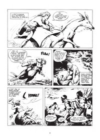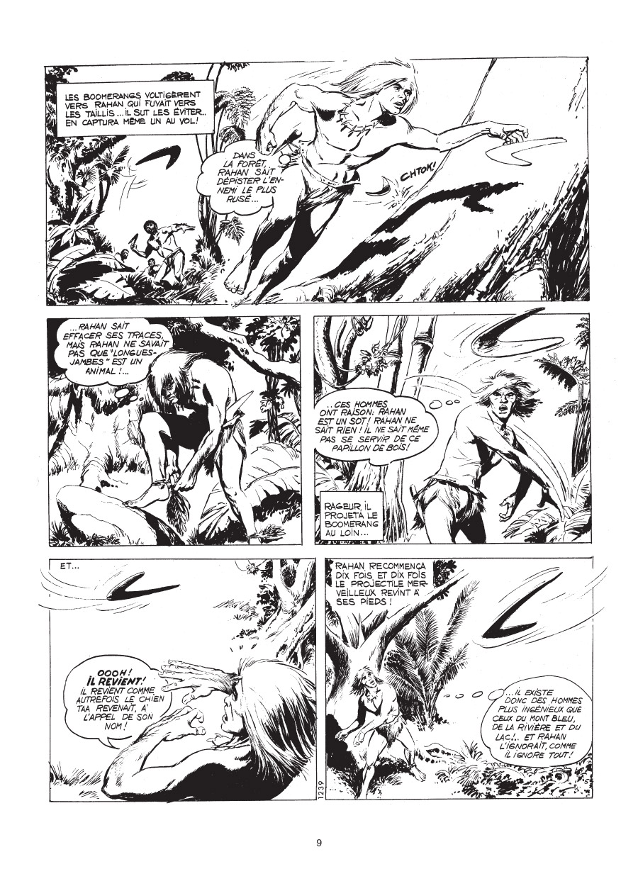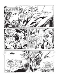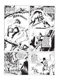 André Chéret : J’aime beaucoup ces intégrales en noir et blanc, qui me rappellent les débuts de Rahan dans Pif. J’aime aussi la couleur mais le noir et blanc fait plus ressortir la force du personnage. La couleur l’atténue hélas un peu. D’autant qu’il y a eu des couleurs pas terribles parfois ! (rires) Elles étaient souvent faites en Italie sur un calque, qui était ensuite envoyé en Roumanie pour être imprimé, sans contrôle ni rien du tout. On avait parfois des cases assez particulières, où la couleur du ciel pouvait changer entre le dessus et le dessous d’une branche…