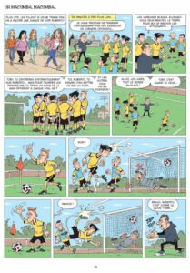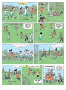 Que l’on aime ou pas le foot, on adhère très vite au dessin à mi-chemin entre le style de Joan et celui des caricaturistes. Il y a vraiment une belle variété de physiques et de gueules, les actions techniques sont dynamiques et sans faute de proportion. Un régal. Foot Furieux est une série de BD tout public, accessible dès 9 ans, qui se distingue par un mélange étonnant et maîtrisé : un dessin fluide, lisible et coloré. Concernant le dessin, vous connaissez peut-être le style de Gürsel car il a dessiné quelques images humoristiques qui circulent sur le net (dont la plupart sont regroupées dans la BD sea-sex-and-sun ». C’est un trait franco-belge assez typique.Pour convaincre le fan d’Ovalie, il en fallait. Mission accomplie dans ce tome 30, qui ravira les amateurs du genre et fera plaisir a ceux qui découvrent la Série, ou le foot (si il y en a !). Avec ce 30e homme, les Foot furieux, confirment, le virage amorcé dans le tome précédent. La série ne se limite plus à une succession de gags : un véritable fil rouge narratif, se déploie, porté par des personnages récurrents et une intrigue qui se développe sur la durée. Un cocktail toujours aussi drôle, mais désormais, narrativement structuré, avec un souffle feuilletonnant. Après avoir impulsé cette évolution au tome 29, le scénaristes, Daniel Bultreys conclut ici un premier récit en forme de dytique. Le dessin de Gürkan Gürel, toujours aussi drôle et expressif, reste quant à lui d’une efficacité remarquable.